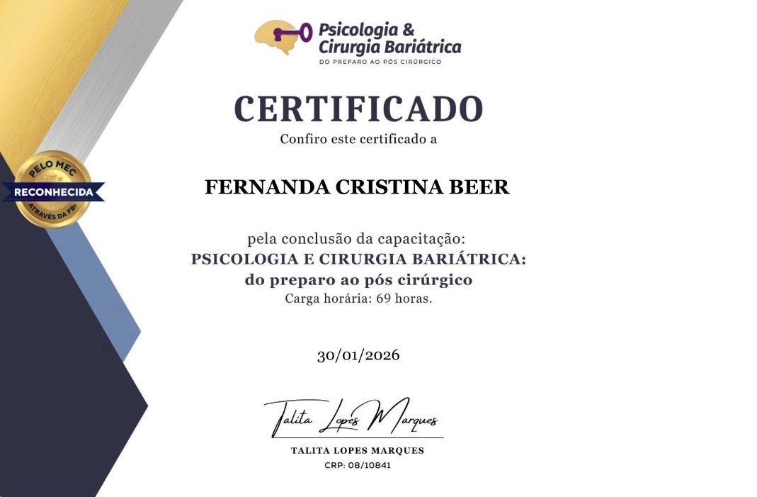 - Capacitação em Psicologia e Cirurgia Bariátrica: do preparo ao pós cirúrgico.